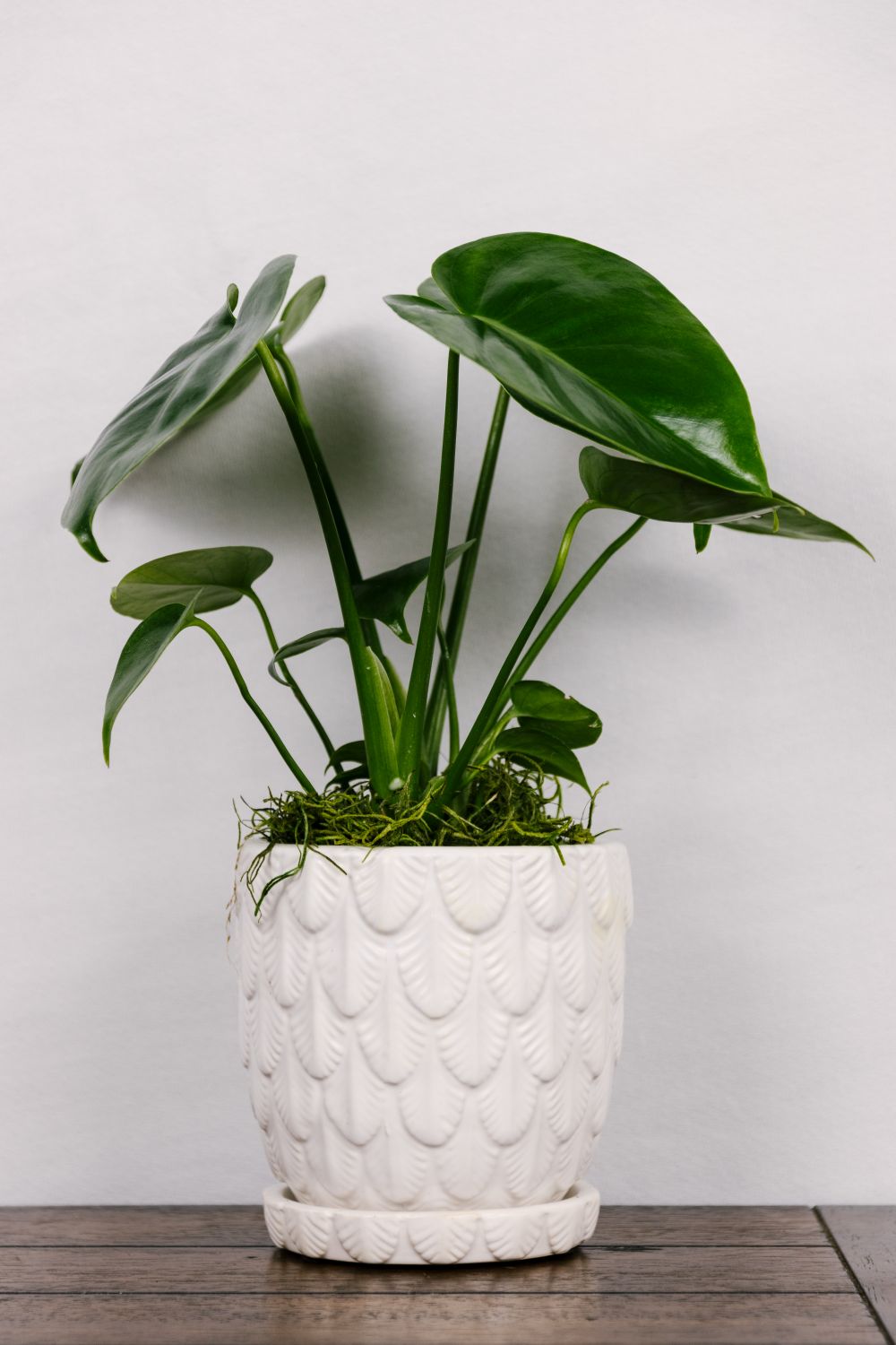 Plant comes as pictured. 4-inch plant potted in white ceramic pot with attached saucer.
