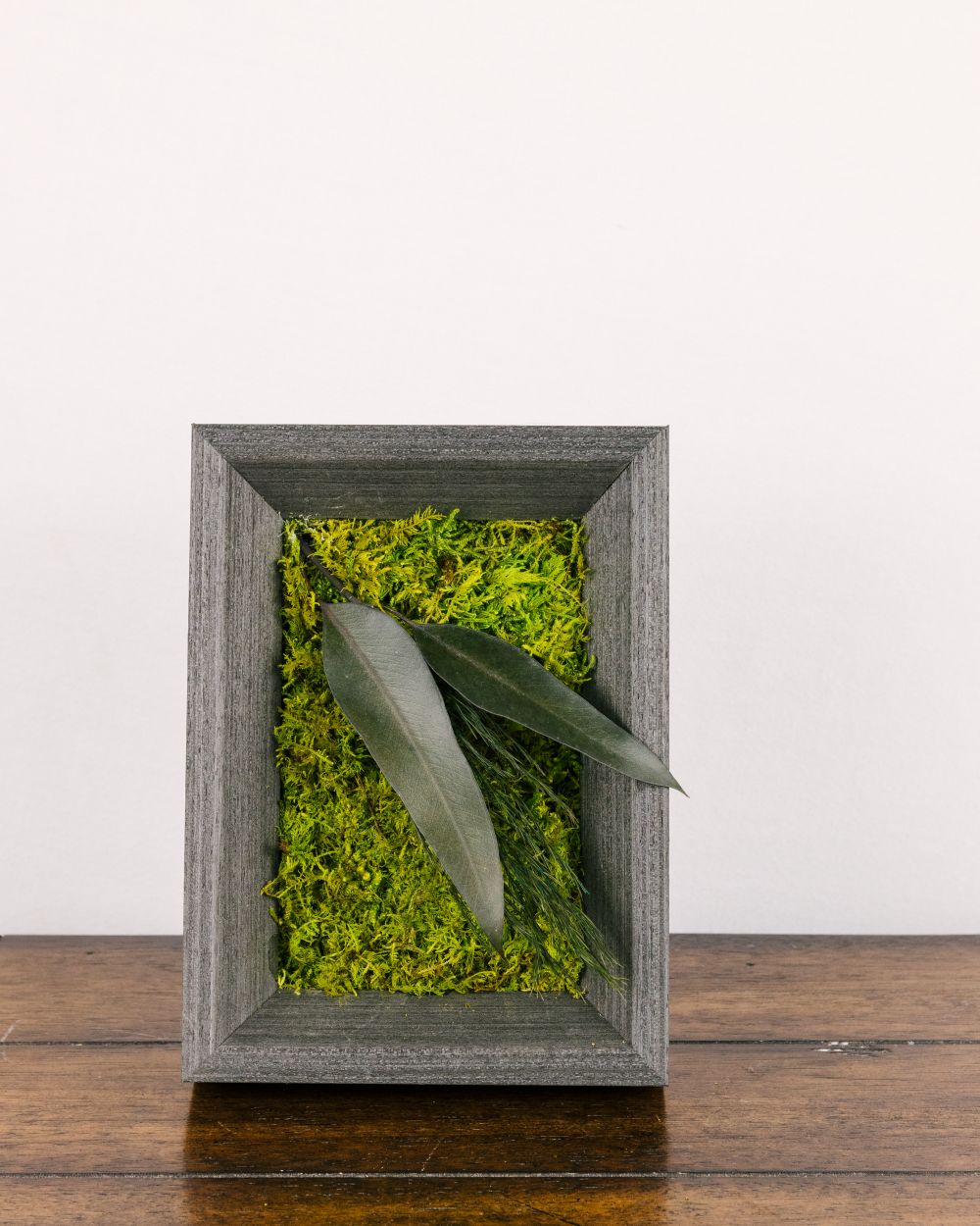 Small, framed moss art featuring an array of preserved mosses and other accents. This small size is perfect for a bathroom, hallway, or gallery wall.