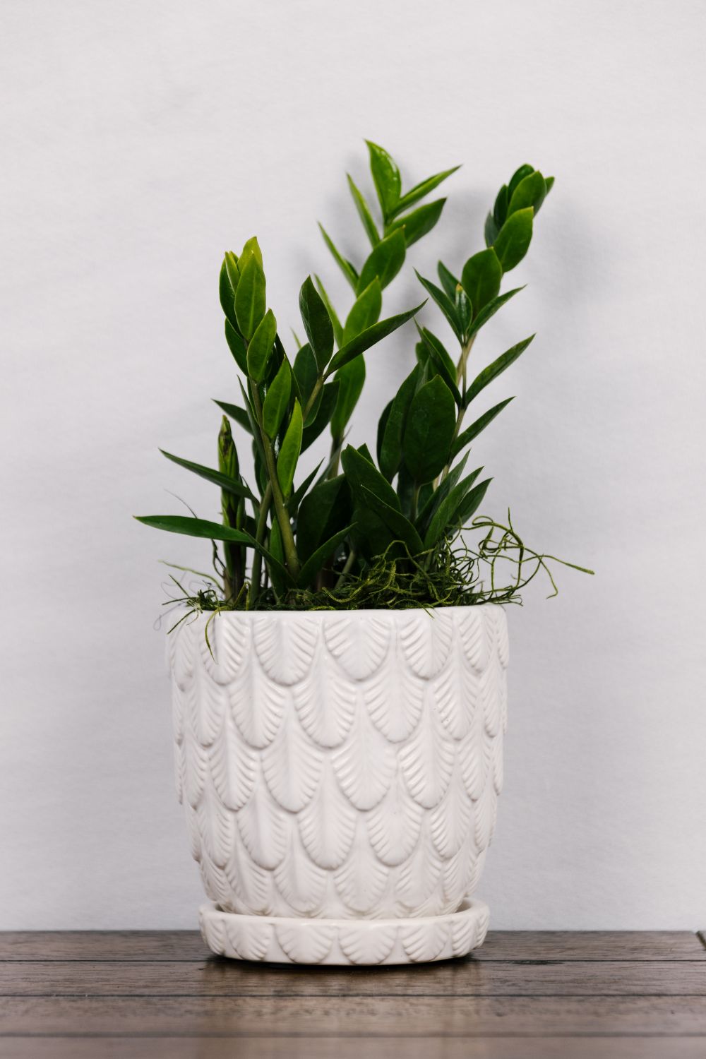 Plant comes as pictured. 4-inch plant potted in white ceramic pot with attached saucer.